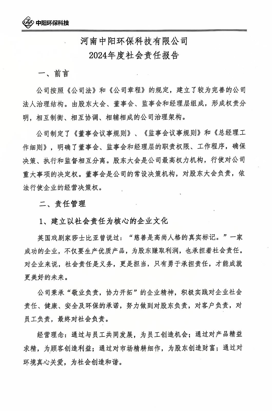 河南中陽(yáng)環(huán)??萍加邢薰?024年度社會(huì)責(zé)任報(bào)告